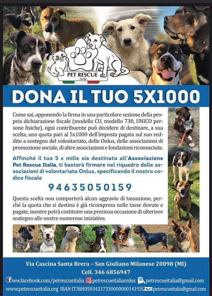 Scegli di destinare il tuo 5 per mille a Pet Rescue Italia